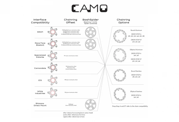 Le système de plateau CAMO (Chainline And Material Optimization) a été créé par les ingénieurs de Wolf Tooth pour l’optimisation des lignes de chaîne et des matériaux sur les pédaliers Direct Mount.